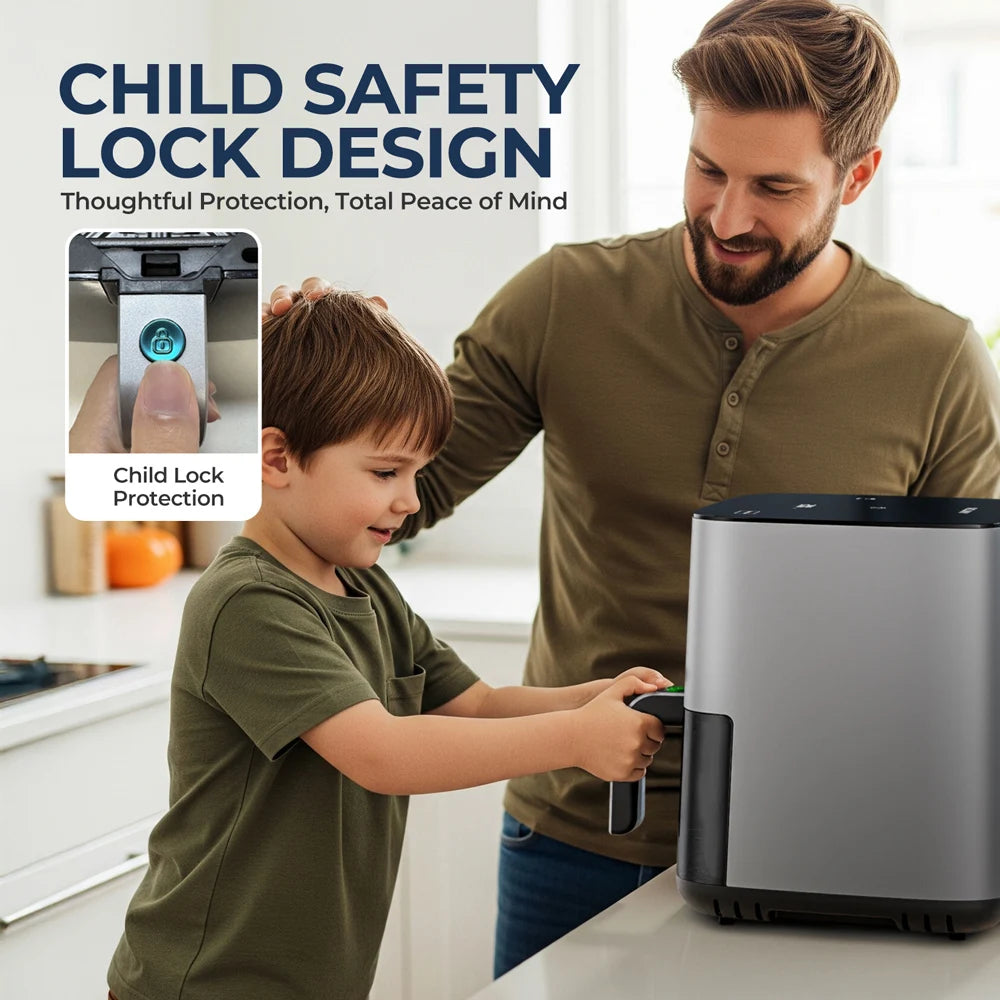 استمتع بتجربة طبخ صحية ولذيذة مع قلايتنا الهوائية الكهربائية بسعة 5 لتر. تقنية الطبخ بالهواء الساخن تضمن لك الحصول على طعام مقرمش من الخارج وطري من الداخل بدون استخدام الزيت.