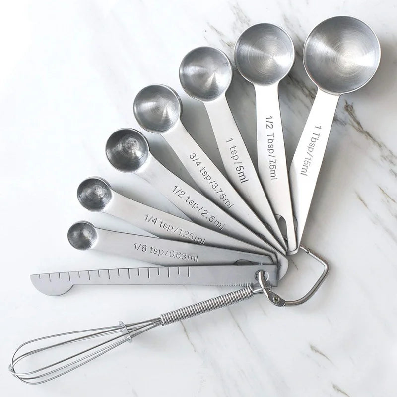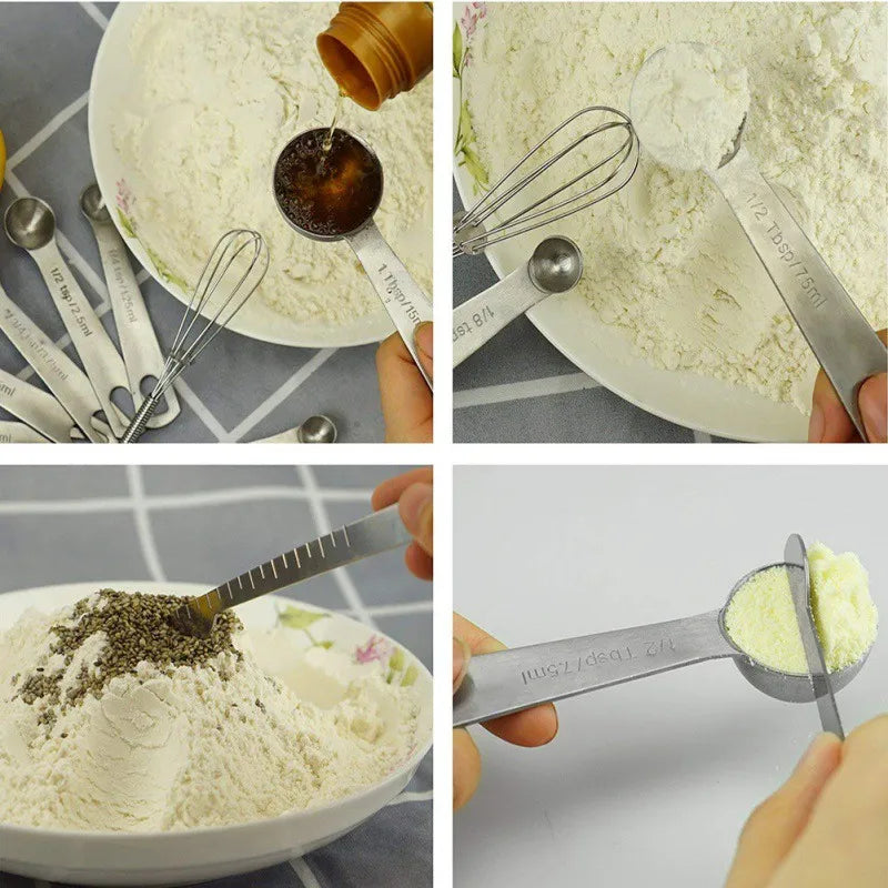 مجموعة ملاعق القياس المتعددة الاستخدامات المصنوعة من الستانلس ستيل الغذائي عالي الجودة، متوفرة بـ 6 أو 7 أو 9 قطع لتلبية جميع احتياجاتك في المطبخ