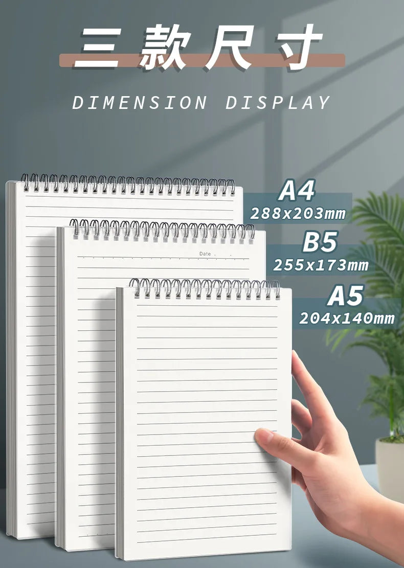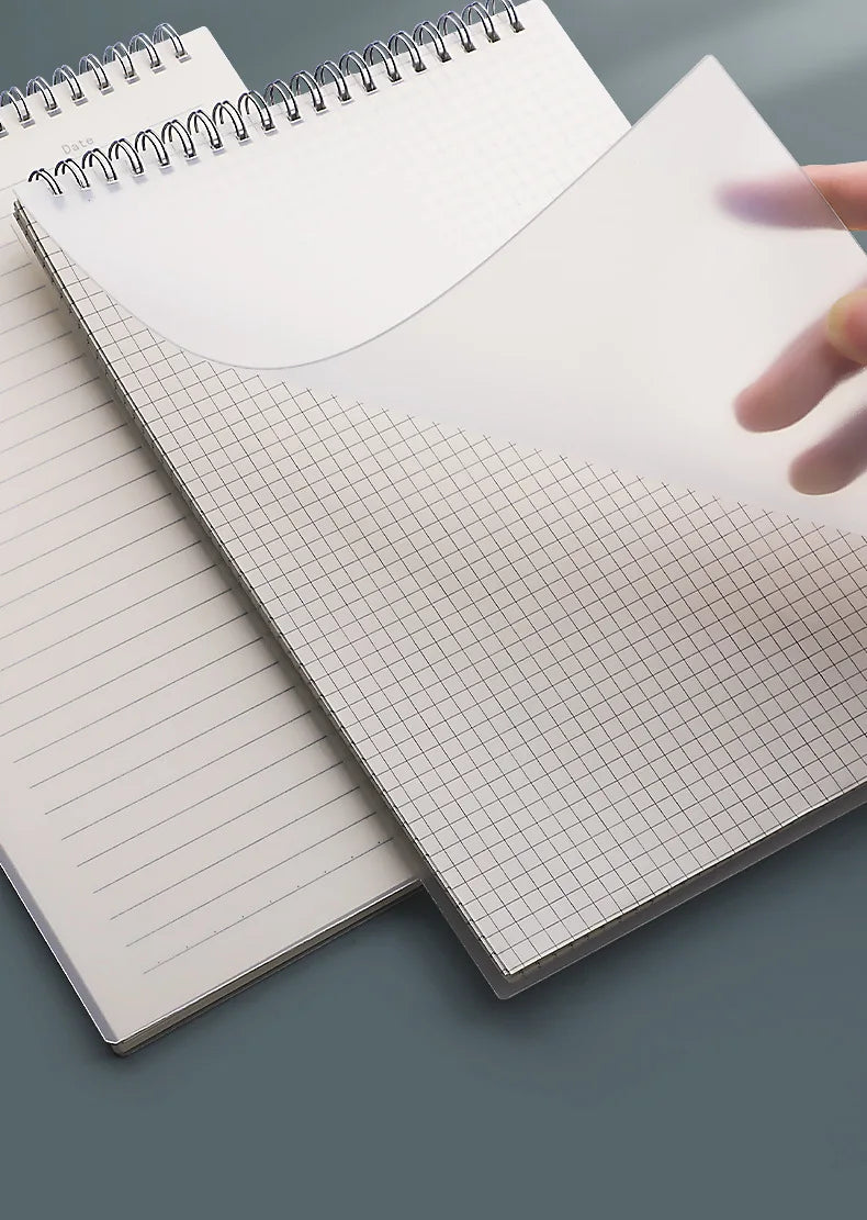 دفتر ملاحظات حلزوني عالي الجودة مصمم لتلبية احتياجاتك اليومية في الكتابة والتدوين. يتميز بغلاف من مادة PP المقاوم والمتين الذي يحمي الأوراق من التلف والرطوبة.