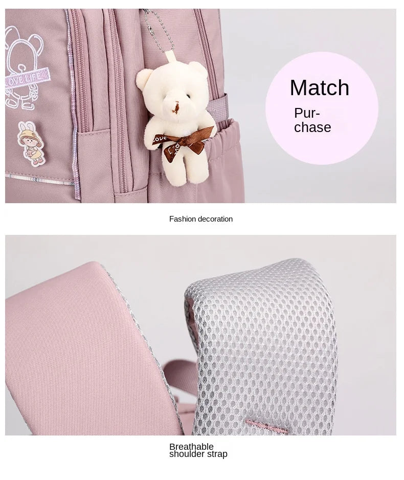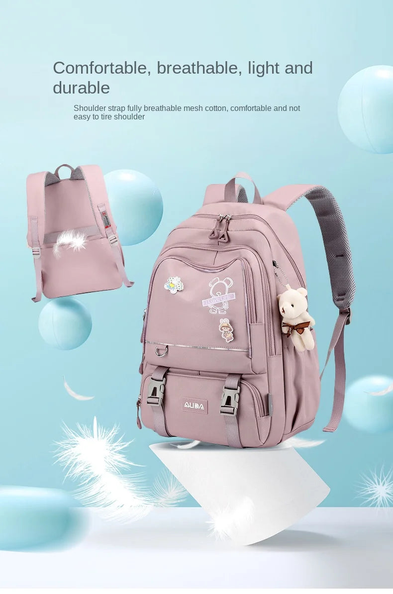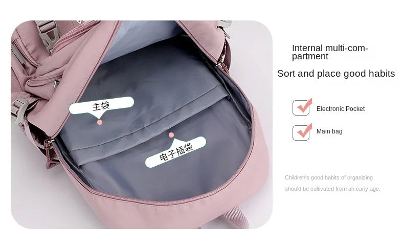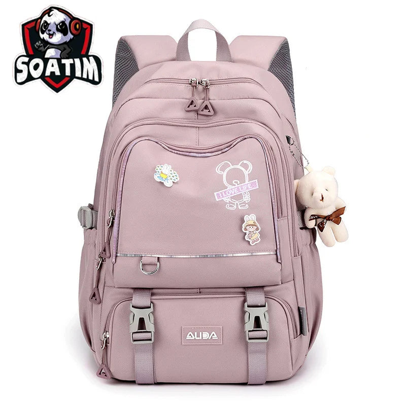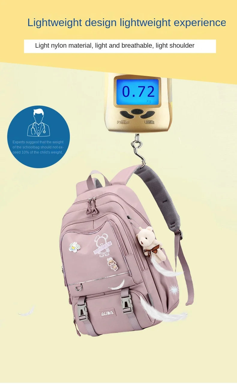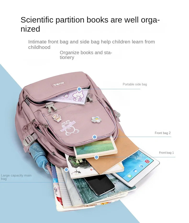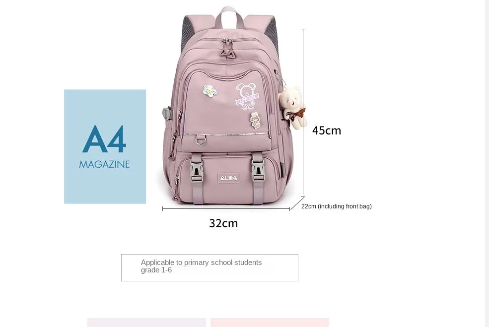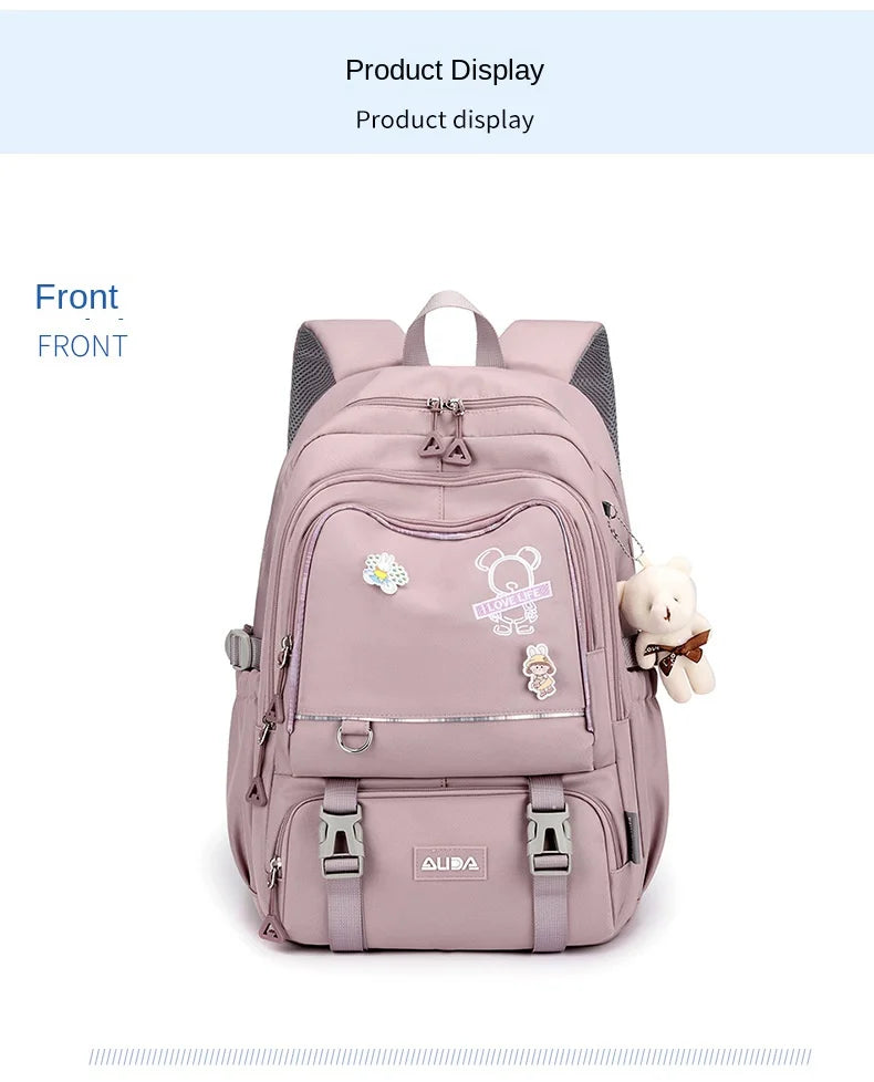 حقيبة ظهر عصرية وعملية مصممة خصيصاً للطالبات في المرحلة الابتدائية. تتميز بتصميم كاواي جذاب ومساحة كبيرة لاستيعاب جميع الكتب والأدوات المدرسية.