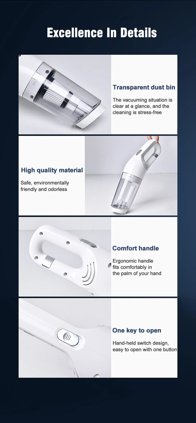 مكنسة كهربائية محمولة قابلة للشحن - الحل الأمثل لتنظيف المنزل والسيارة