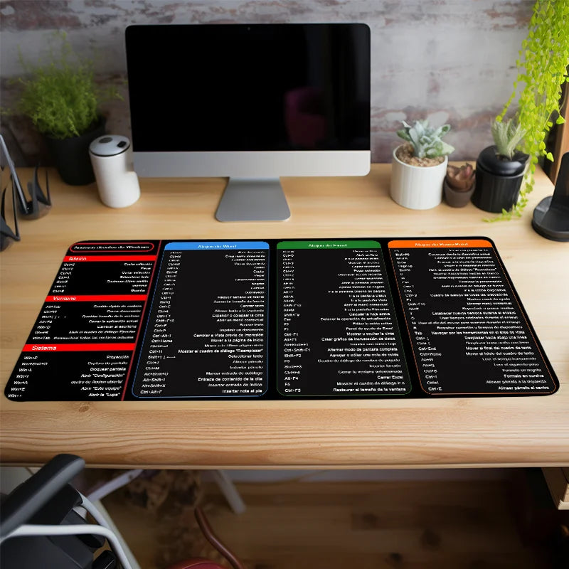 وسادة ماوس كبيرة بنمط اختصارات إكسل الإسبانية - حصيرة مكتب للكمبيوتر ولوحة المفاتيح - هدية مثالية لموظفي المكاتب والطلاب
